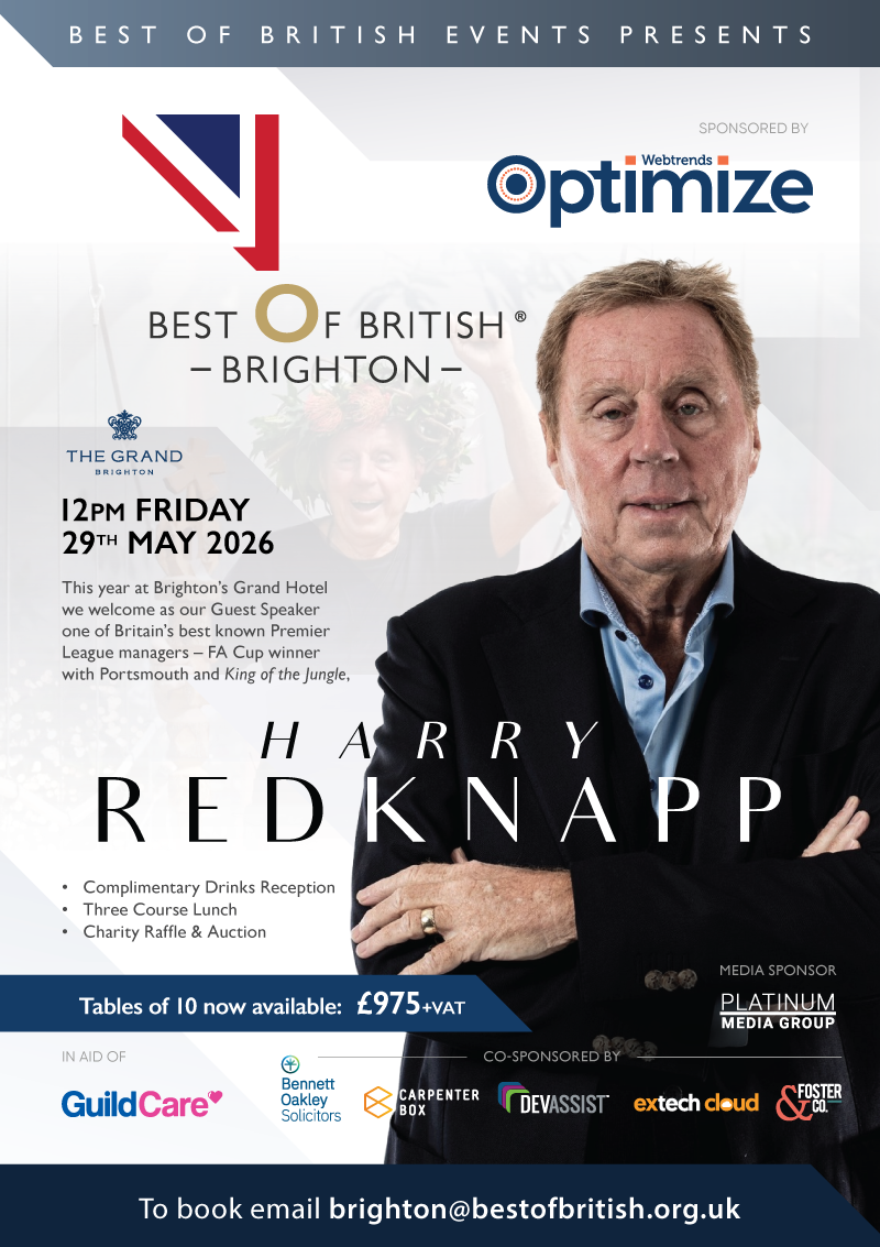 Join us at Brighton’s iconic Grand Hotel featuring none other than football legend Harry Redknapp as our guest speaker!